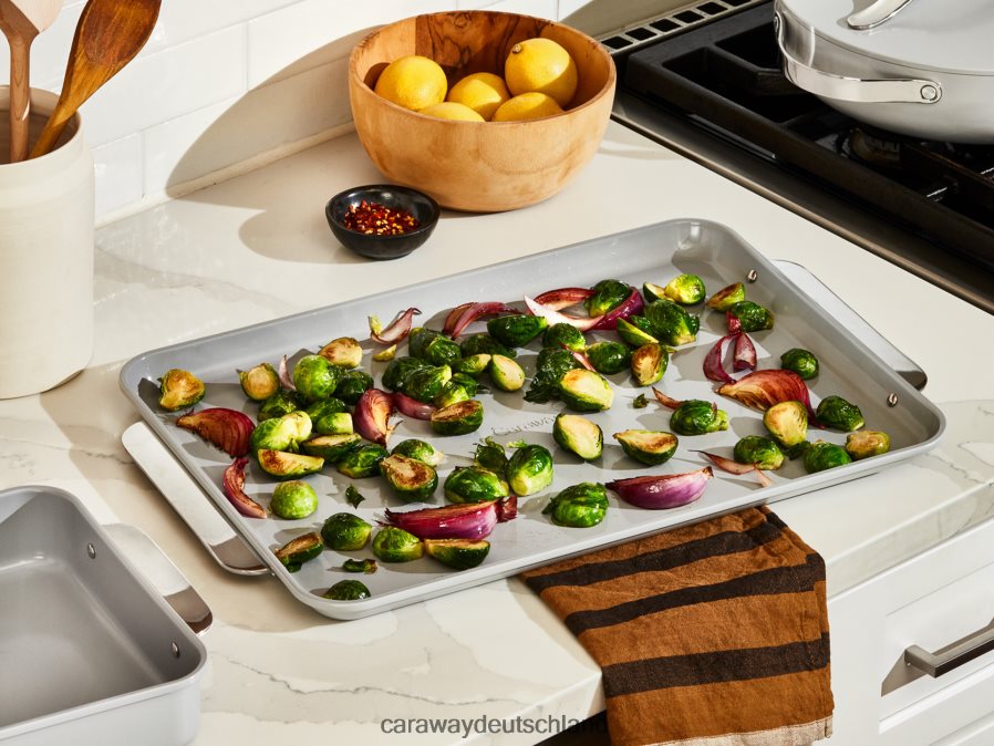 Backzubehör für jede Küche: Lernen Sie das Backblech-Duo kennen – eine ofenfertige Kombination aus unseren 18 x 13 Zoll großen und 15 x 10 Zoll großen Backblechen. Mit ihrer natürlich glatten, ungiftigen Keramik-beschichteten Innenseite machen diese Bleche gesundes Backen (und Reinigen) einfacher als je zuvor.