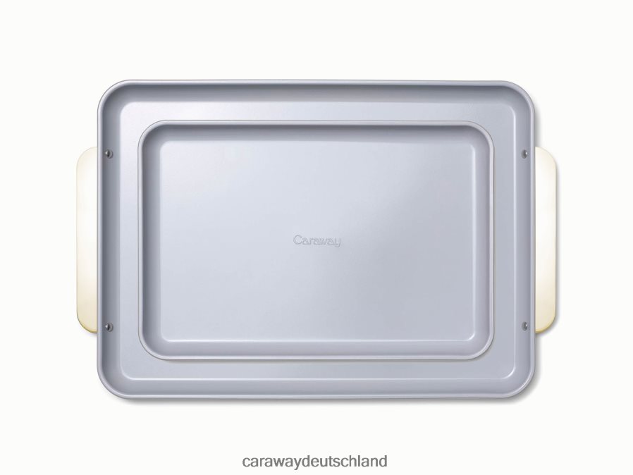 Backzubehör für jede Küche: Lernen Sie das Backblech-Duo kennen – eine ofenfertige Kombination aus unseren 18 x 13 Zoll großen und 15 x 10 Zoll großen Backblechen. Mit ihrer natürlich glatten, ungiftigen Keramik-beschichteten Innenseite machen diese Bleche gesundes Backen (und Reinigen) einfacher als je zuvor.