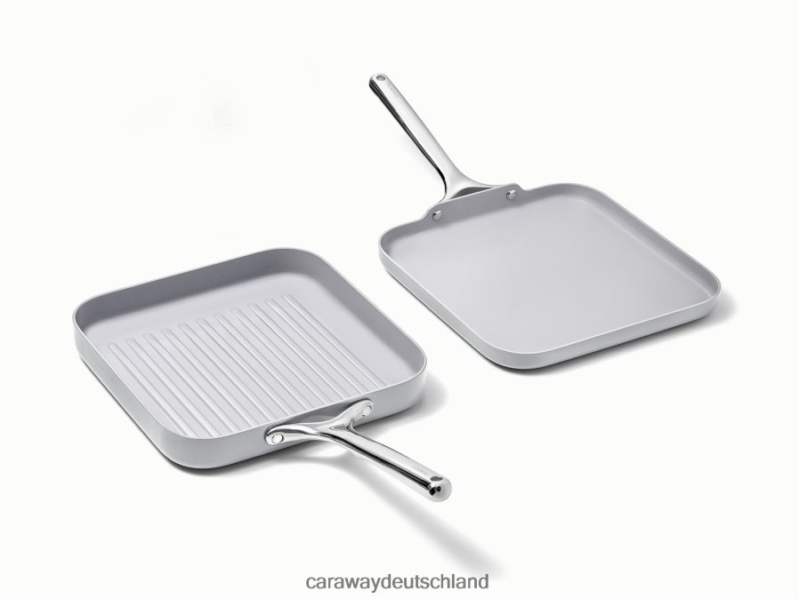 Sauberes Kochen wird mit unserem quadratischen Pfannen-Duo zum Kinderspiel. Zu diesem Duo gehören unsere quadratische Grillpfanne, die sich ideal zum Grillen im Innenbereich eignet und Gemüse, Fleisch und Paninis Grilllinien verleiht, sowie unsere quadratische Grillpfanne, die sich ideal zum Wenden von Burgern, Eiern, Pfannkuchen und allem dazwischen eignet. Mit fast doppelt so viel Kochfläche im Vergleich zu der klassischen Bratpfanne von Caraway verfügen sowohl die quadratische Bratpfanne als auch die Grillpfannen über unsere charakteristische Antihaftbeschichtung für einfaches Kochen und Reinigen.