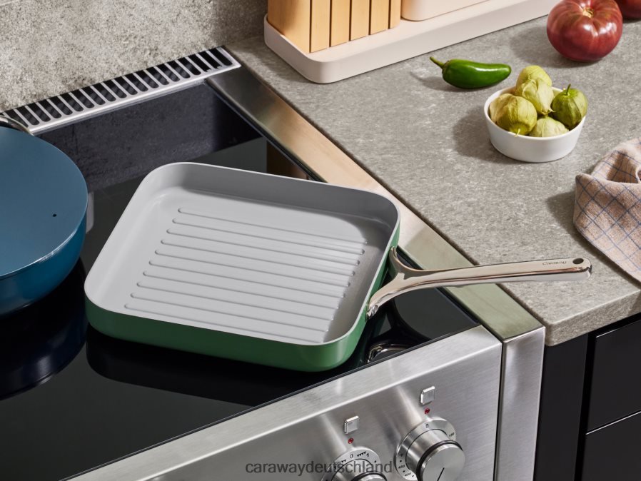 Sauberes Kochen wird mit unserem quadratischen Pfannen-Duo zum Kinderspiel. Zu diesem Duo gehören unsere quadratische Grillpfanne, die sich ideal zum Grillen im Innenbereich eignet und Gemüse, Fleisch und Paninis Grilllinien verleiht, sowie unsere quadratische Grillpfanne, die sich ideal zum Wenden von Burgern, Eiern, Pfannkuchen und allem dazwischen eignet. Mit fast doppelt so viel Kochfläche im Vergleich zu der klassischen Bratpfanne von Caraway verfügen sowohl die quadratische Bratpfanne als auch die Grillpfannen über unsere charakteristische Antihaftbeschichtung für einfaches Kochen und Reinigen.