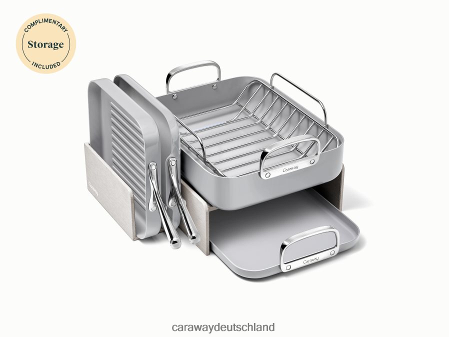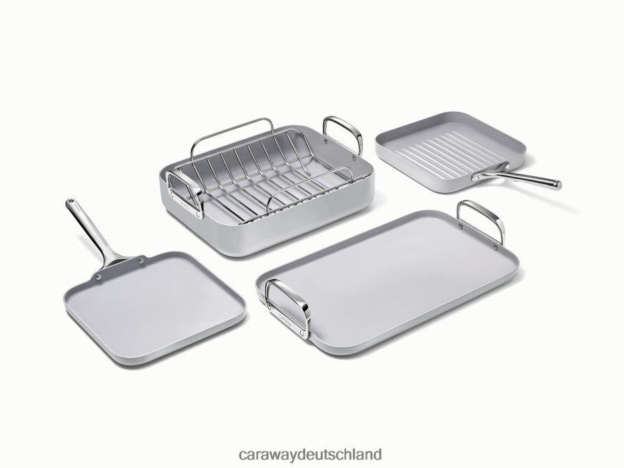 Sauberes Kochen gelingt mit dem ungiftigen Vierkantgeschirr-Set von Caraway. Diese vier geräumigen Pfannen sind mit unserer charakteristischen Antihaft-Keramikbeschichtung ausgestattet und eignen sich perfekt für Rezepte, die etwas mehr Platz benötigen. Zu den Sets gehören kostenlose Magnetorganisatoren, die für Ordnung in Ihren Schränken sorgen.