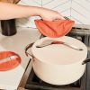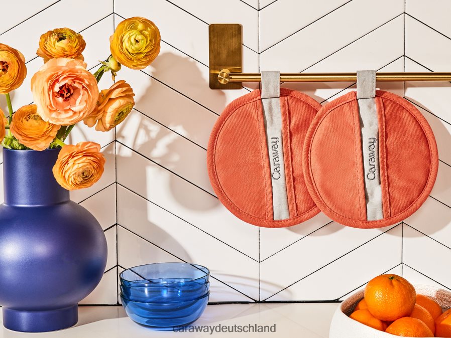 Lernen Sie Ihre Küchenhelfer kennen. Unsere Topflappen verfügen über doppellagige, schmutzabweisende Nähte, die dafür sorgen, dass sie wie ein Profi hitzebeständig sind. Das Paar besteht aus einem wolkenweichen Bio-Baumwollmaterial und eignet sich perfekt für die Handhabung von Teekesseln, Backblechen oder als Untersetzer für den gedeckten Tisch.