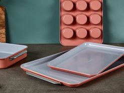 Backzubehör für jede Küche: Lernen Sie das Backblech-Duo kennen – eine ofenfertige Kombination aus unseren 18 x 13 Zoll großen und 15 x 10 Zoll großen Backblechen. Mit ihrer natürlich glatten, ungiftigen Keramik-beschichteten Innenseite machen diese Bleche gesundes Backen (und Reinigen) einfacher als je zuvor.