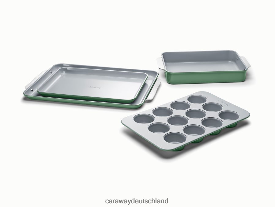 Lernen Sie das 5-teilige Backgeschirrset mit Keramikbeschichtung von Caraway kennen, das frei von giftigen Chemikalien ist. Dieses Set enthält 2 Backbleche, eine Muffinform, eine rechteckige Form und Schrankorganisatoren.