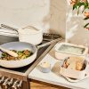 Unsere Bratpfanne aus Keramik (Deckel im Lieferumfang enthalten) ermöglicht gesundes Kochen in der Küche ohne schädliche Chemikalien: Verwendung für Gerichte mit Brühe, Dinnerpartys und mehr. Mit einer ungiftigen, keramikbeschichteten Innenseite macht diese langlebige, antihaftbeschichtete Pfanne das Kochen einfacher als je zuvor, macht die Reinigung (sozusagen) zum Vergnügen und verleiht jedem Zuhause einen Hauch von Farbe.