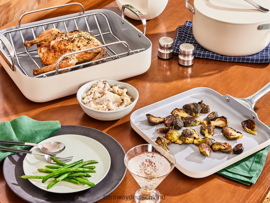 Sauberes Kochen gelingt mit dem ungiftigen Vierkantgeschirr-Set von Caraway. Diese vier geräumigen Pfannen sind mit unserer charakteristischen Antihaft-Keramikbeschichtung ausgestattet und eignen sich perfekt für Rezepte, die etwas mehr Platz benötigen. Zu den Sets gehören kostenlose Magnetorganisatoren, die für Ordnung in Ihren Schränken sorgen.