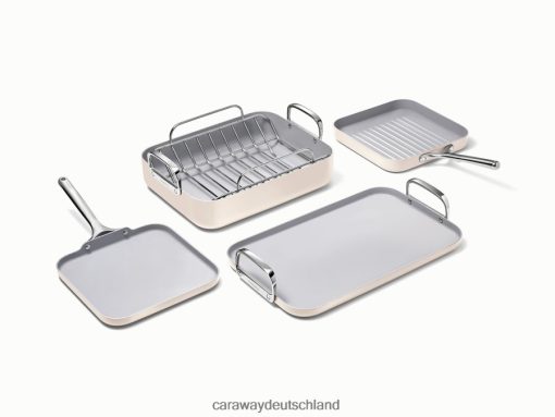 Sauberes Kochen gelingt mit dem ungiftigen Vierkantgeschirr-Set von Caraway. Diese vier geräumigen Pfannen sind mit unserer charakteristischen Antihaft-Keramikbeschichtung ausgestattet und eignen sich perfekt für Rezepte, die etwas mehr Platz benötigen. Zu den Sets gehören kostenlose Magnetorganisatoren, die für Ordnung in Ihren Schränken sorgen.
